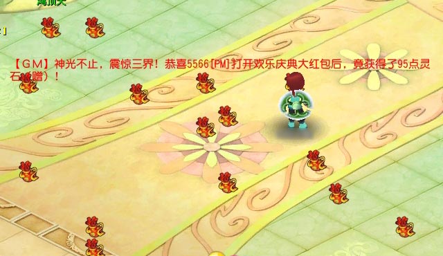 | 任务奖励 | ![]() 物品名称:欢乐庆典大红包 物品说明:制作华美的大红包,专为庆典所制!打开后可随机获得6点到95点不等的灵石,右键点击打开。 |